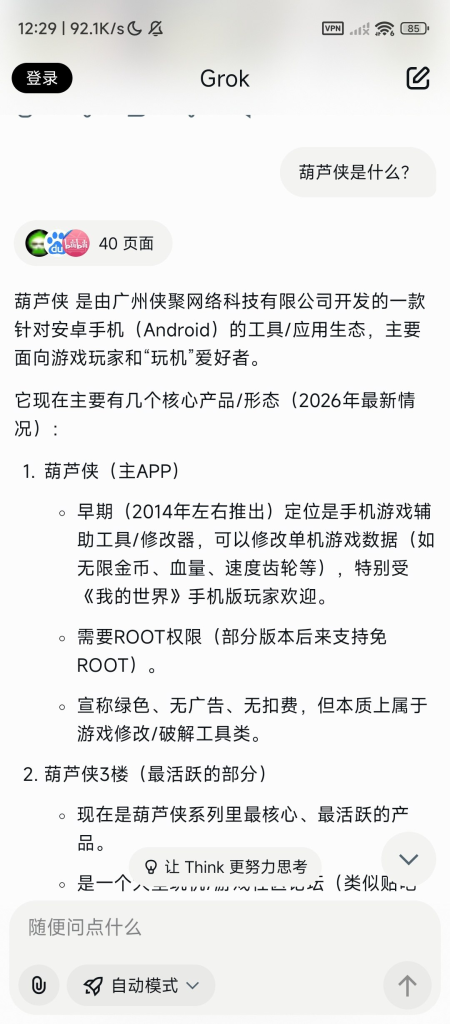 📖【应用简介】GrokAI是由埃隆·马斯克领导的科技公司xAI开发的一款先进人工智能助手。它能够像人类一样思考并回答问题,分析和解答自然语言问题。通过此应用,用户可以进行写作、获取知识、接受教育以及完成日常任务。Grok AIMod APK版本解锁了原始应用中的所有高级功能,包括先进的对话系统、无限的问答功能、高级个性化选项以及无广告体验。这款史诗级MOD还提供了独家内容和高级工具,通常在官方应用中无法免费获得。使用此应用,用户可以显著提高工作效率,并准确地完成任务。